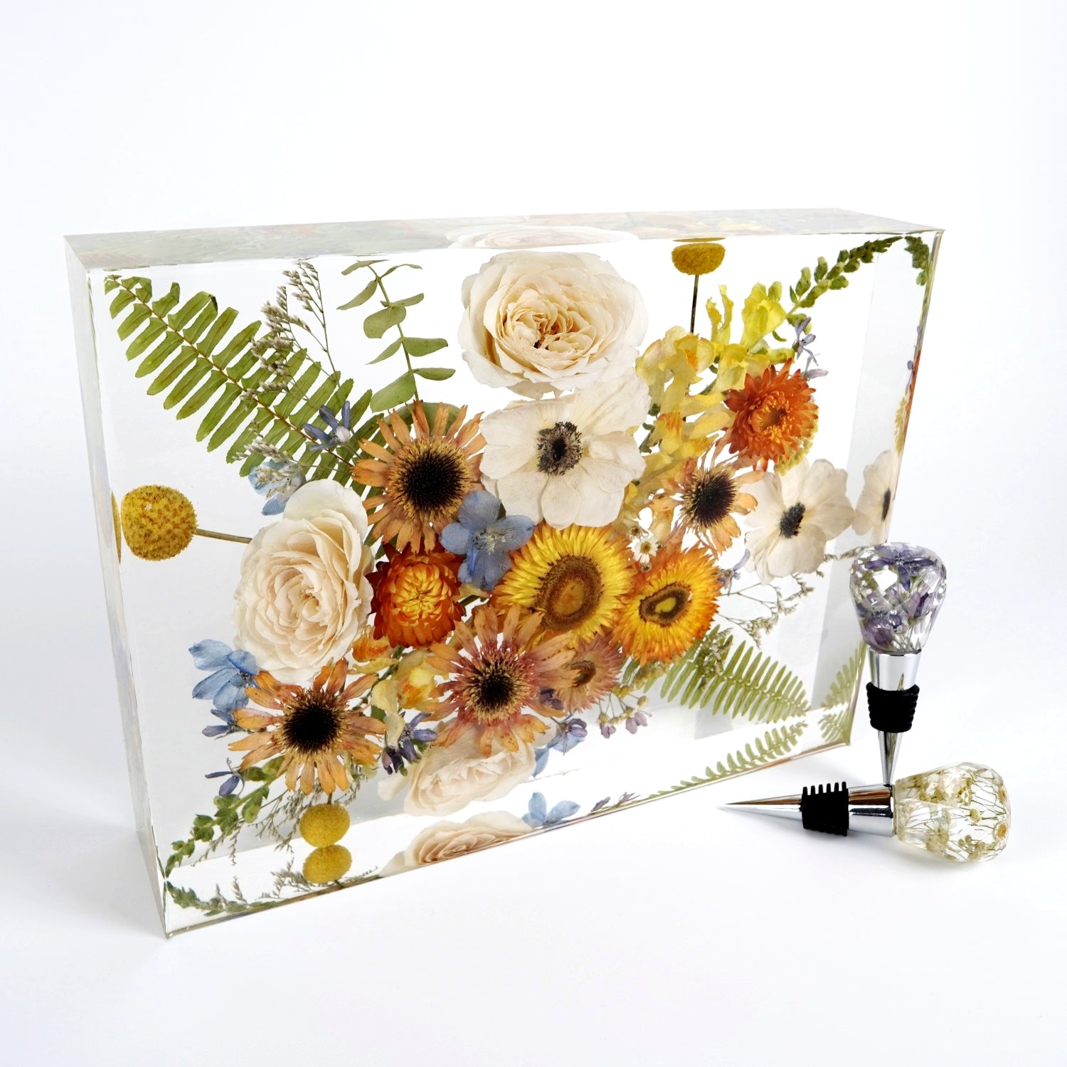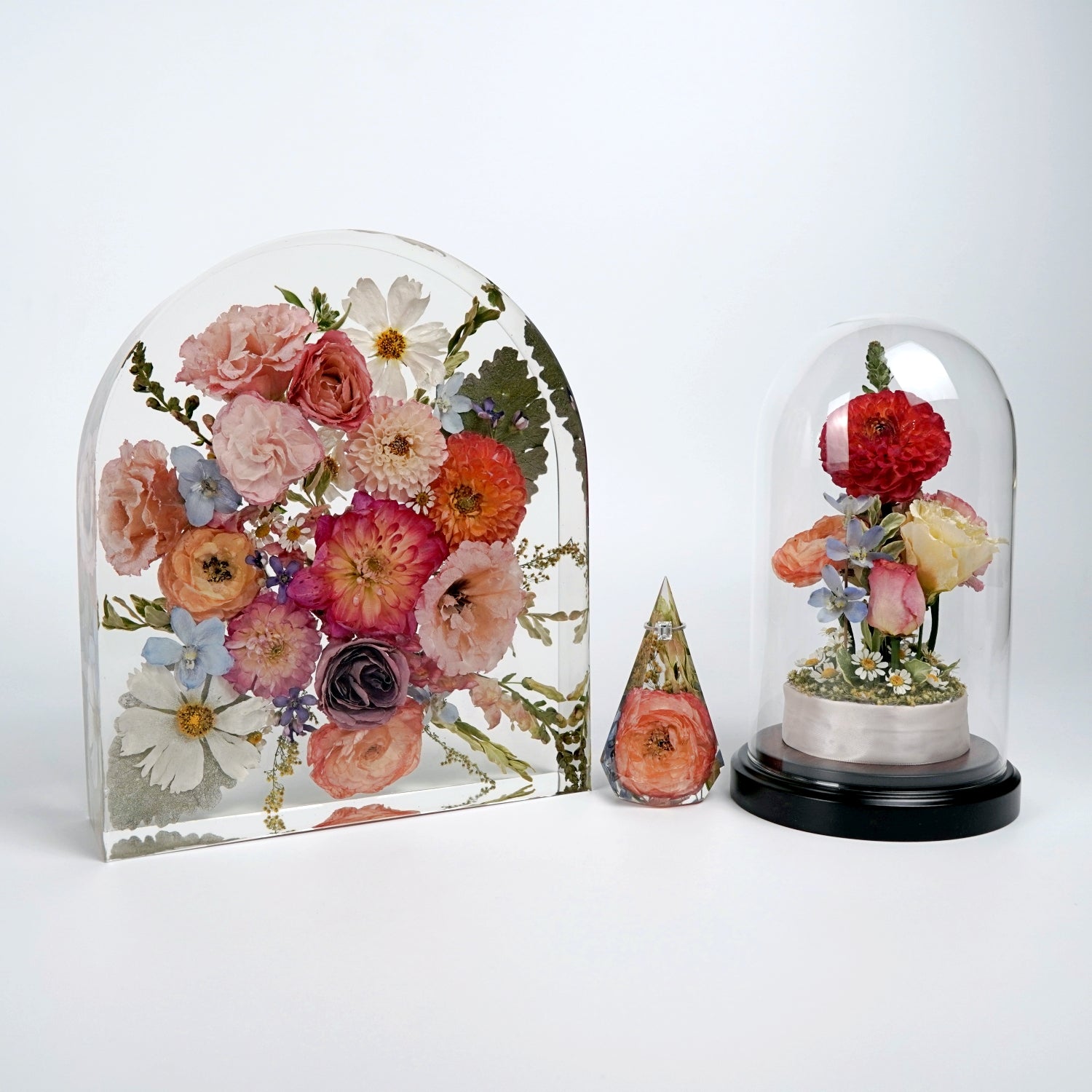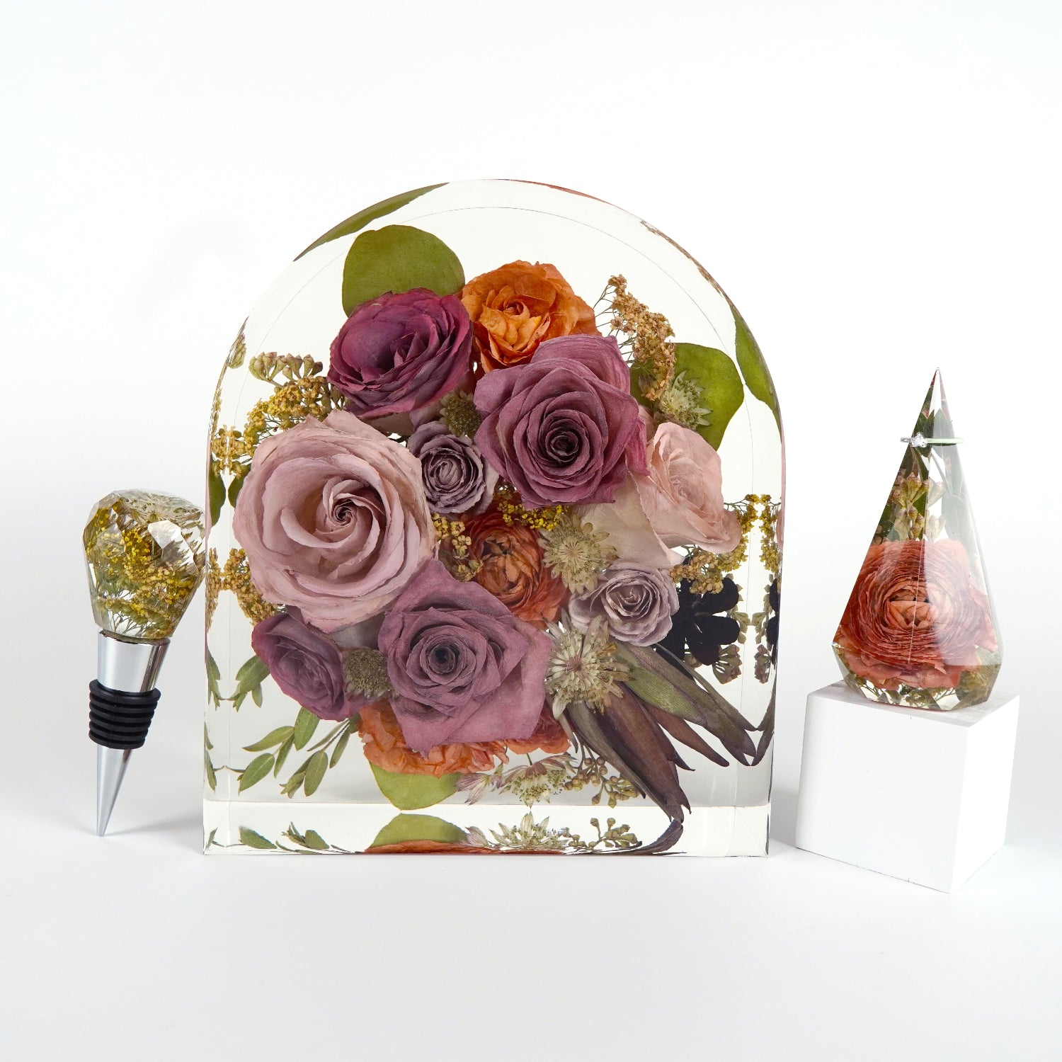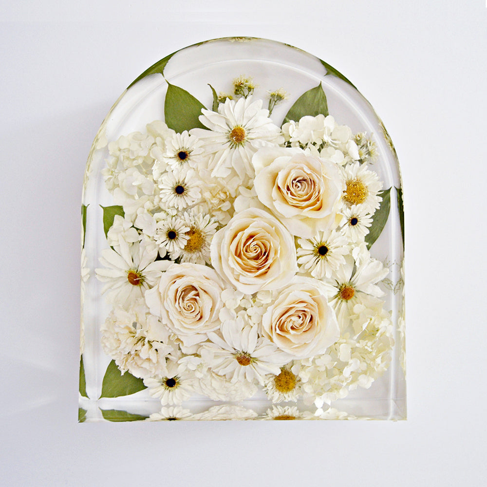 I cannot say enough good things about this business. Nikki and her team were willing to take in my wedding flowers the day I contacted her (the day after my wedding) after my pre existing arrangement for preservation fell through. My resin block really captures how beautiful my bridal Bouquet was that day. I will cherish this forever!!!